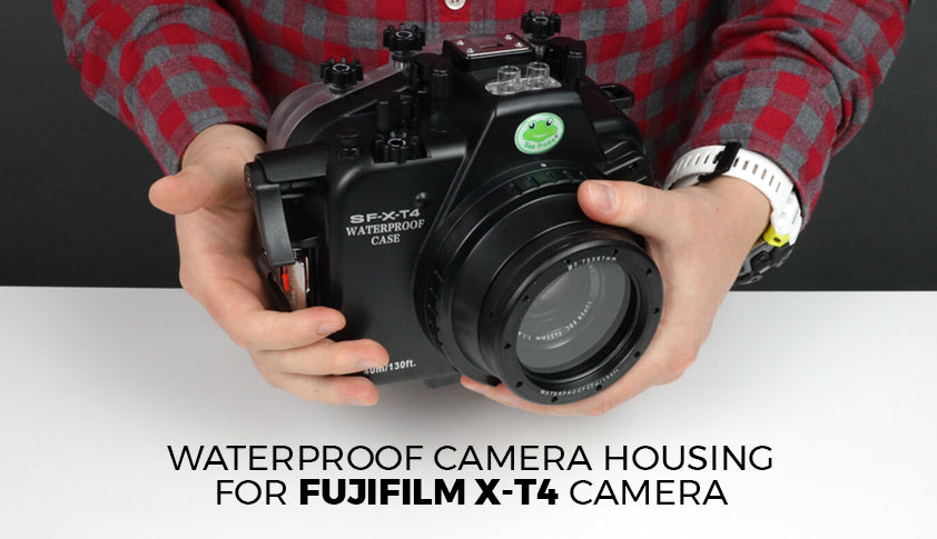 Sea Frogs Waterproof camera housing for Fujifilm X-T4 camera work with different lenses.
